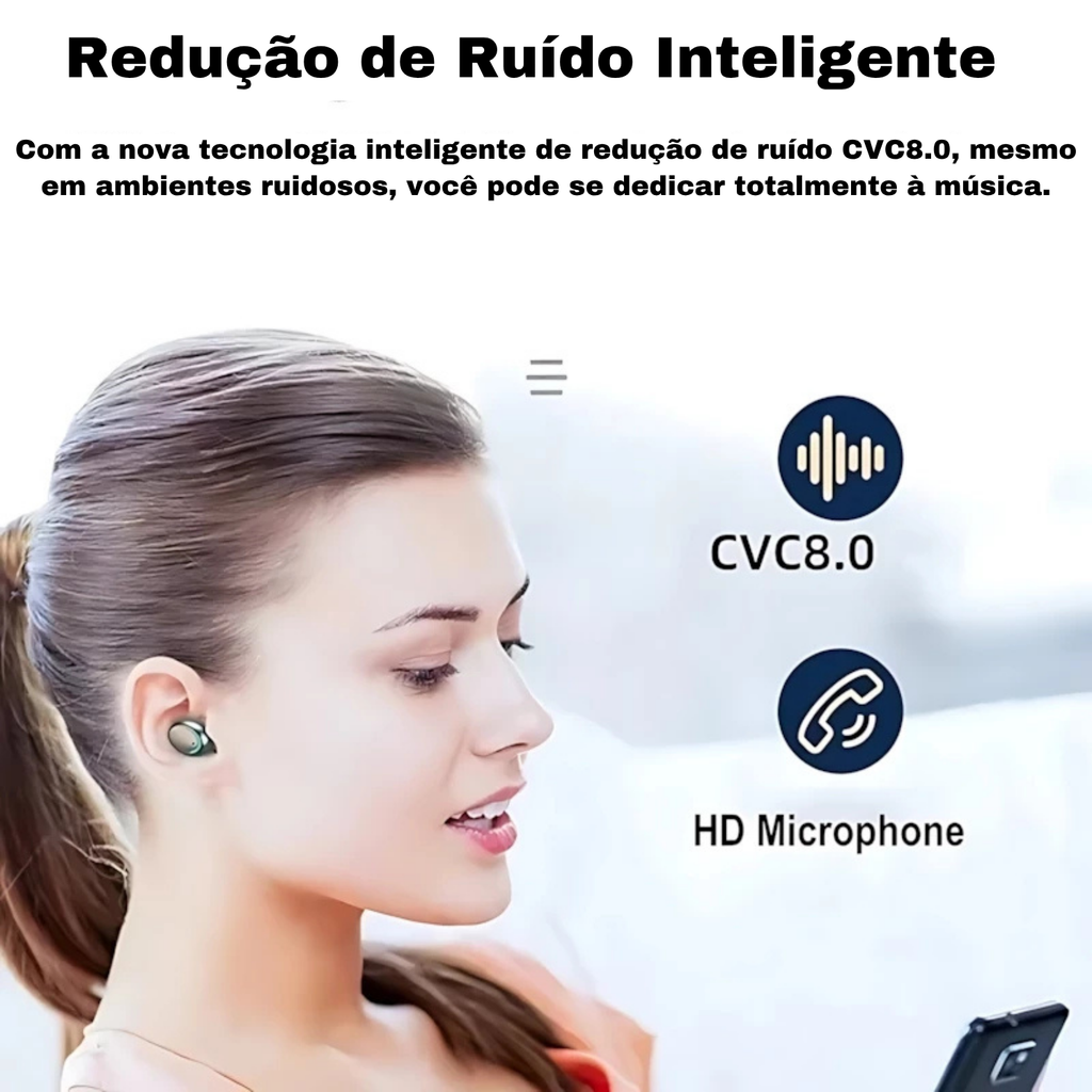 • Chip Dual-Ear 5.0: Tecnologia Bluetooth 5.0 sem atrasos em jogos e conexão estável e rápida.