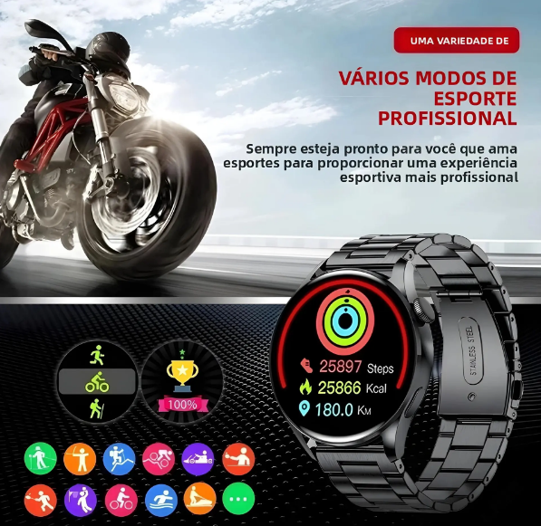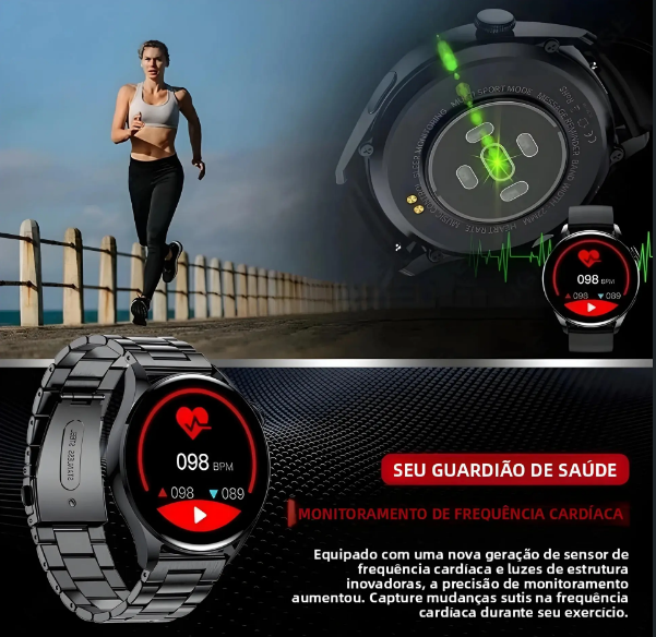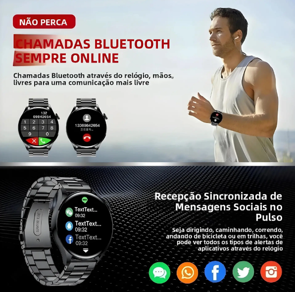 Chamada Bluetooth: Permite que você faça e receba chamadas diretamente do relógio, eliminando a necessidade de tirar seu telefone.