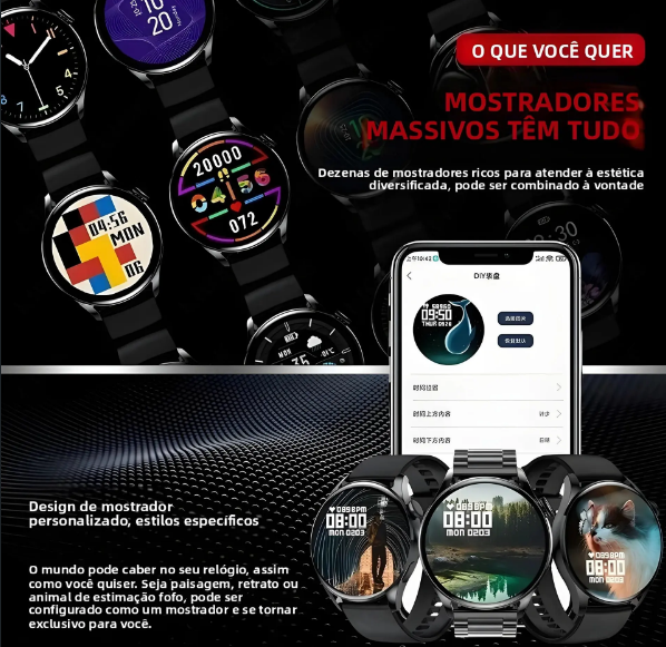 Estilo robusto e bateria de longa duração : Com design sofisticado e bateria de longa duração, o Smartwatch Premium GT4 combina estética e resistência. Sua certificação IP68 garante proteção contra água e poeira, acompanhando você em todas as aventuras.